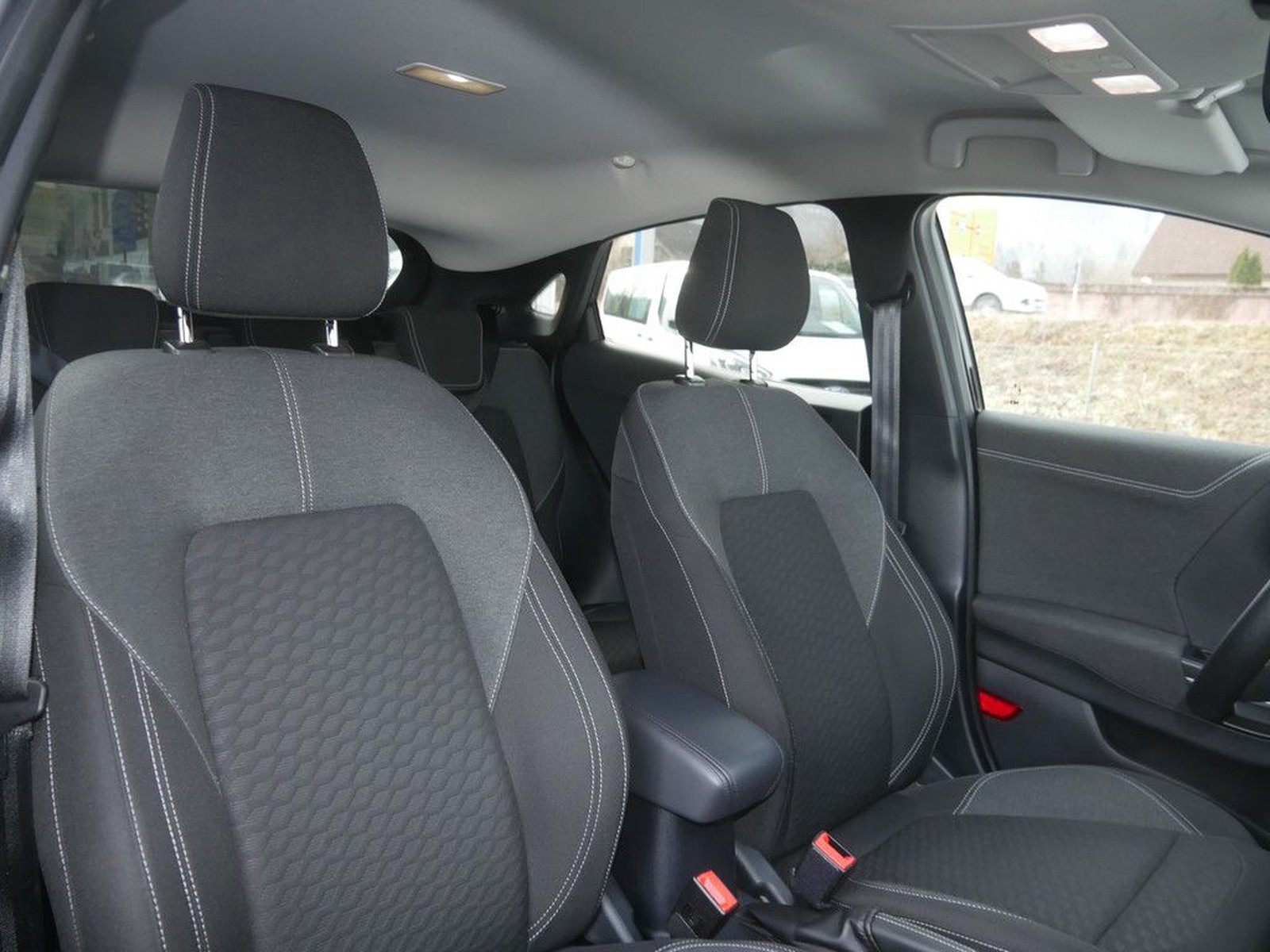Lenkradheizung, Lederlenkrad, Multifunktionslenkrad, Bedienelemente am Lenkrad, Deckenleuchte in LED-Technik, Kontrastnähte, Mittelkonsole mit Getränkehalter, Sonnenblende(n) beleuchtet mit Make-Up Spiegel.